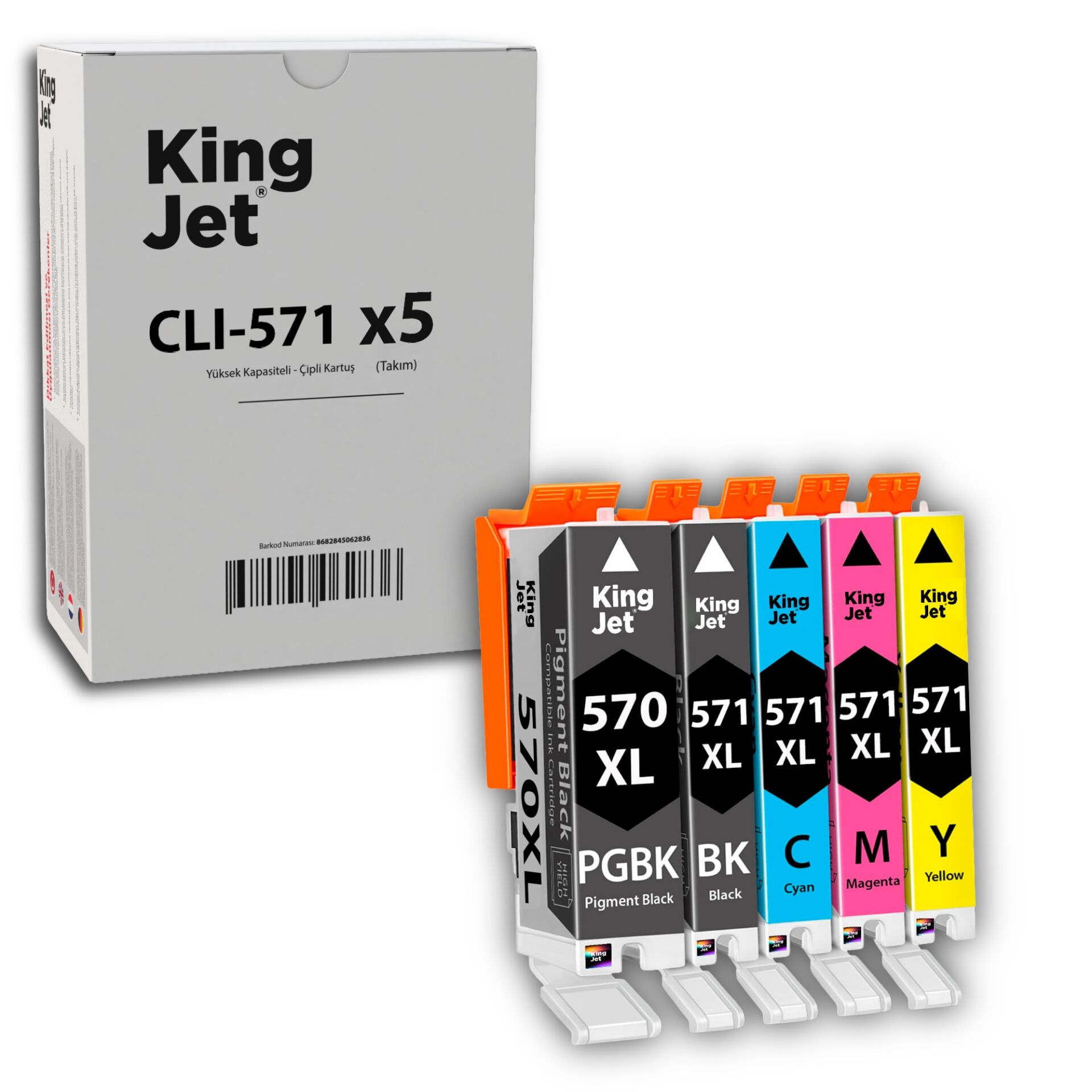 Kingjet Canon PGI-570XL & CLI-571XL Uyumlu Yüksek Kapasiteli 5 Renk (Takım) Muadil Kartuş Çipli