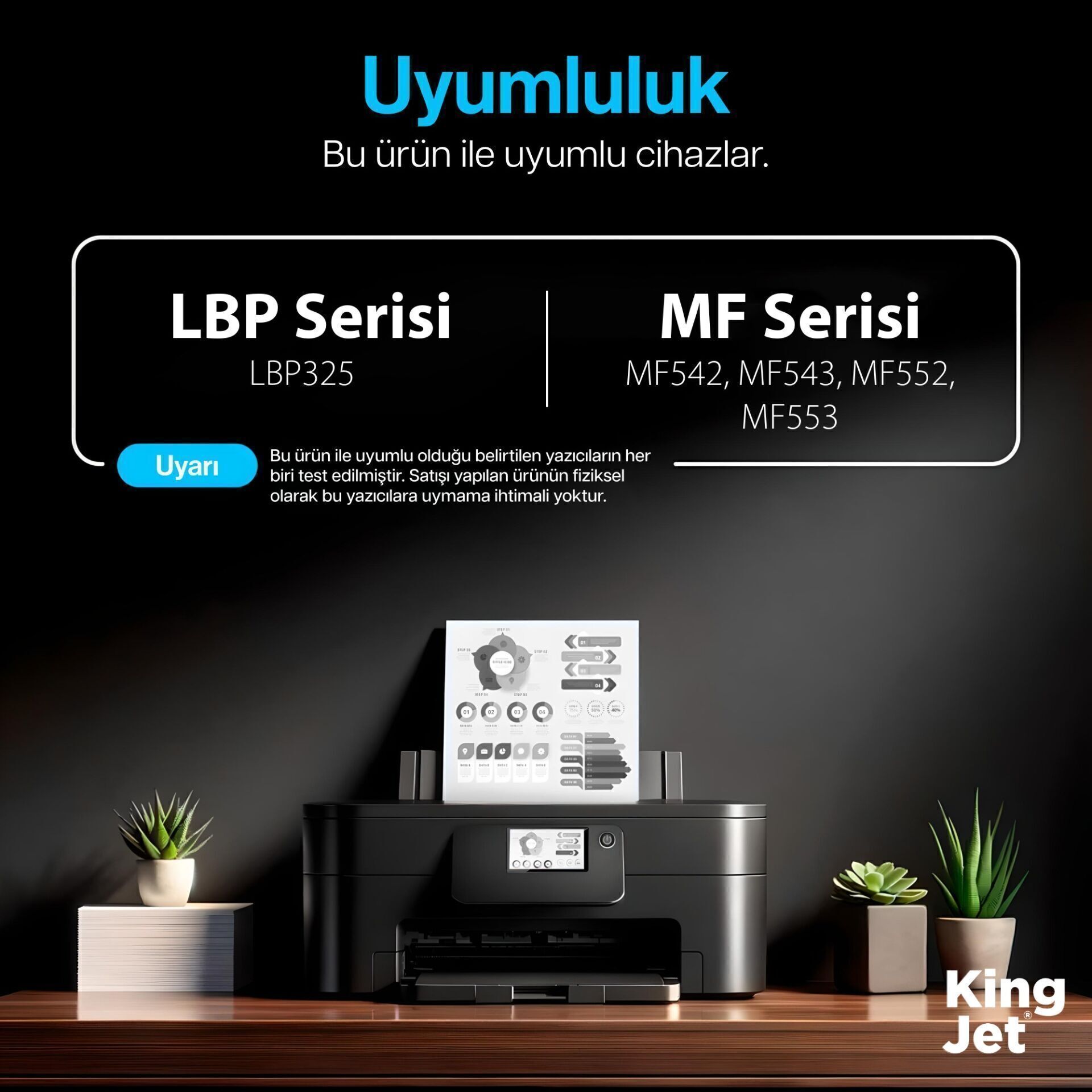 KingJET® CRG-056 tonerleri, aşağıda listelenen i-SENSYS yazıcı modelleri ile kusursuz çalışacak şekilde tasarlanmış ve tek tek test edilmiştir. Fiziksel uyum ve performans garantilidir.