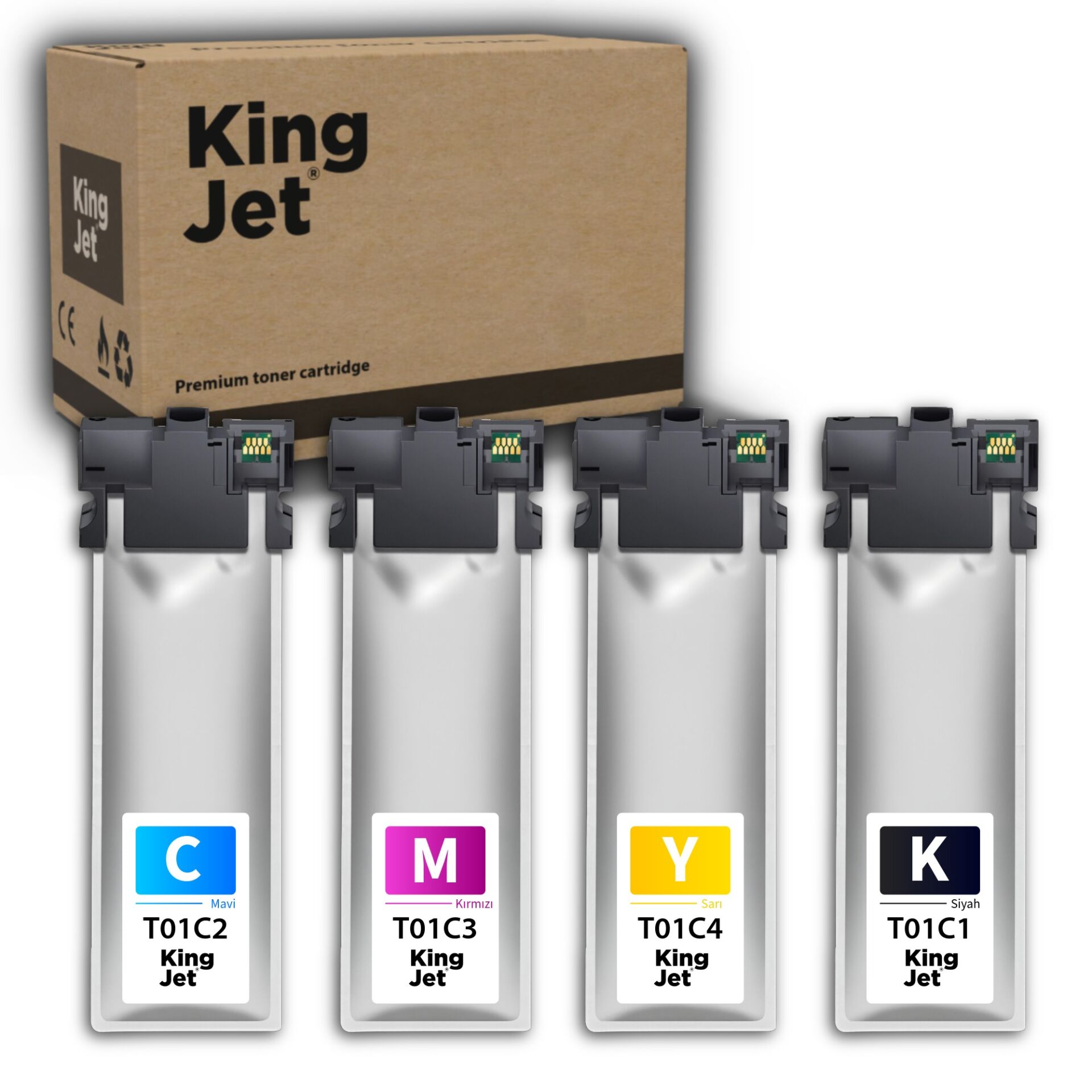 KingJET®️ T9451XL Uyumlu Yüksek Kapasiteli Çipli 4 Renk Kartuş setimiz WorkForce Pro WF-C5210, WF-C5290, WF-C5710, WF-C5790 serisi yazıcılarınızla uyumluluğu sayesinde, uzun ömürlü ve en ekonomik baskı çözümünü sunar.