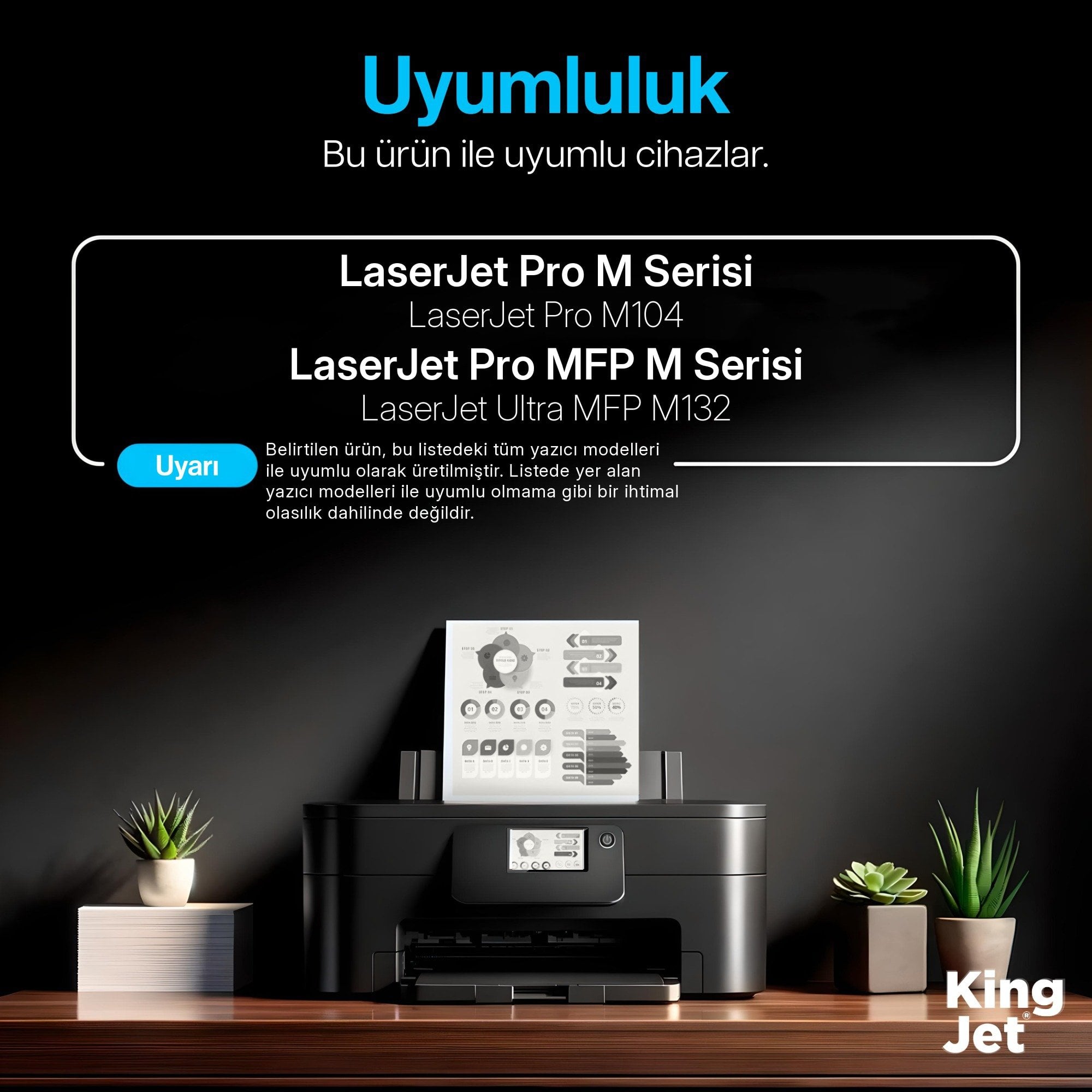 KingJET®️ muadil tonerler, LaserJet Pro serisi cihazınızın fırınlama ve drum (görüntüleme) ünitelerine zarar vermeyecek hassas bileşenlere sahiptir. Cihazınızın ömrünü korur, kağıt sıkışmalarını önler ve kusursuz bir çalışma döngüsü sağlar.Uyumlu Yazıcı Modelleri