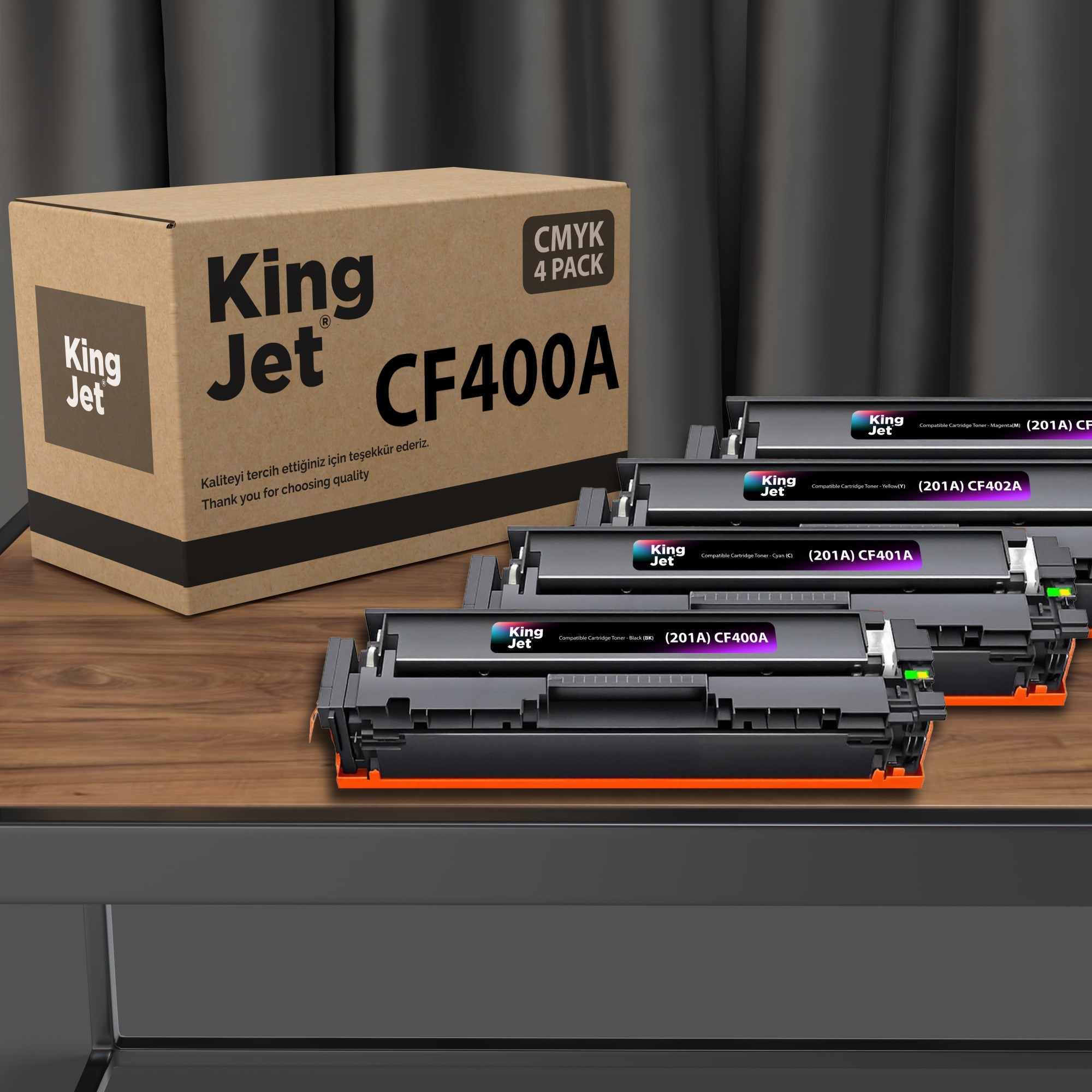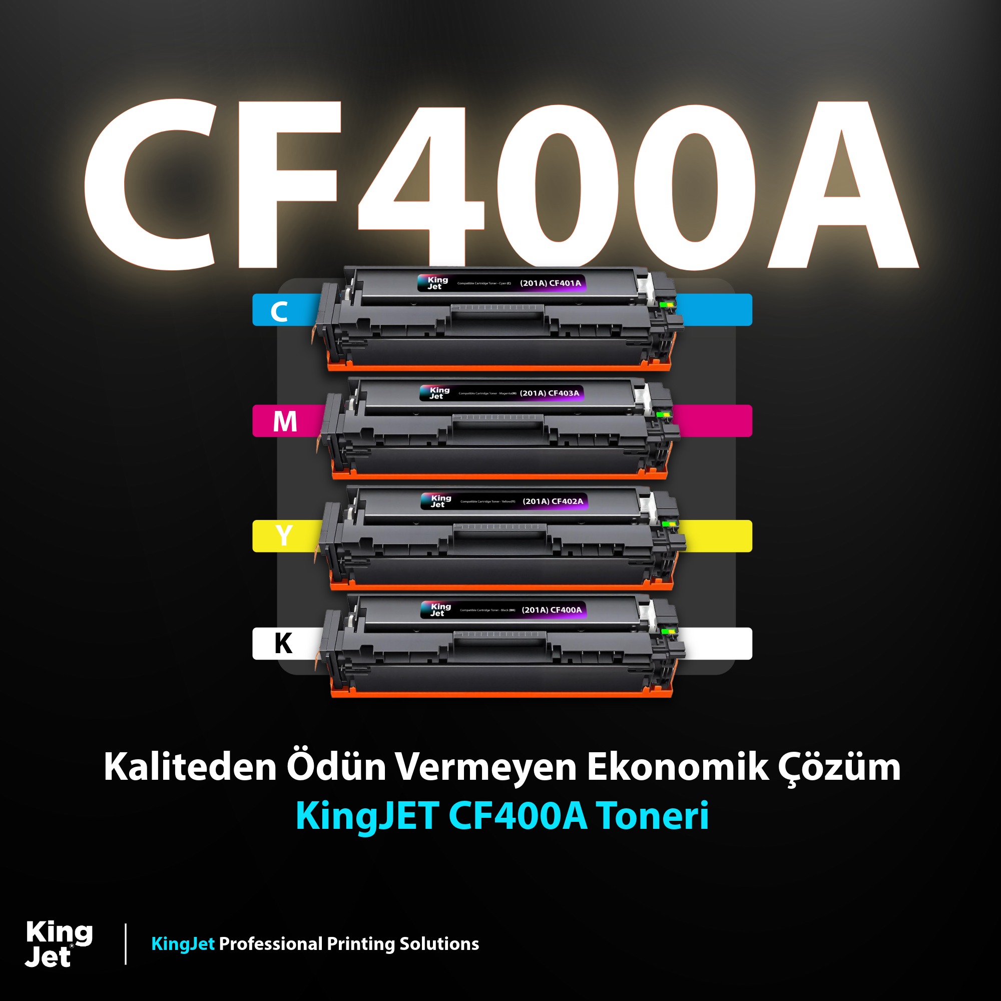 KingJET®️ (201A) CF400A standart kapasiteli çipli 4 Renk (Takım) toner – Color LaserJet M252, M277 serisi yazıcılarla uyumlu, yüksek baskı kalitesi ve ekonomik çözüm.