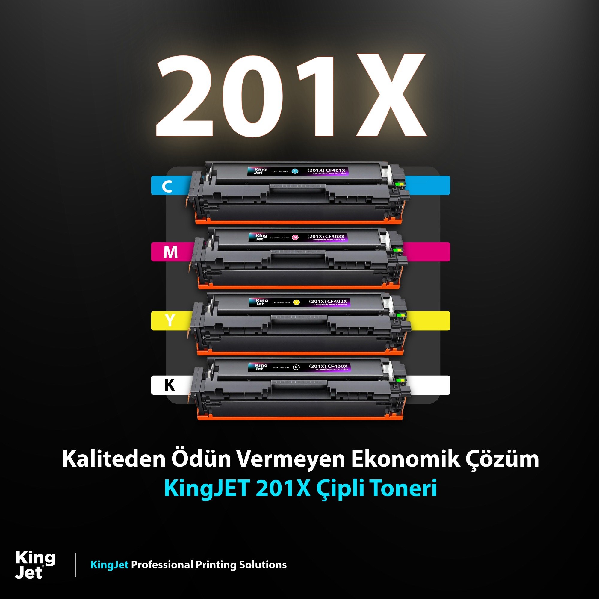 KingJET®️ HP Uyumlu 201X (CF400X) Yüksek Kapasiteli 4 Renk Takım Çipli Muadil Toner Seti