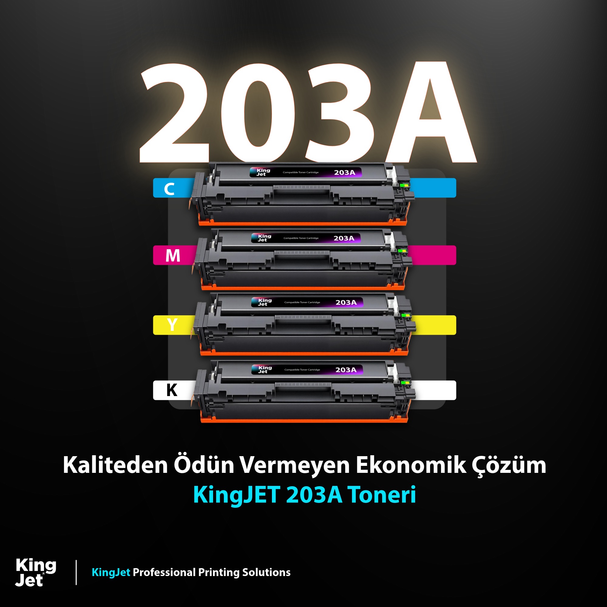 KingJET®️ (203A) uyumlu standart kapasiteli çipli 4 Renk (Takım) toner – Color LaserJet M254, M280, M281 serisi yazıcılarla uyumlu, yüksek baskı kalitesi ve ekonomik çözüm.