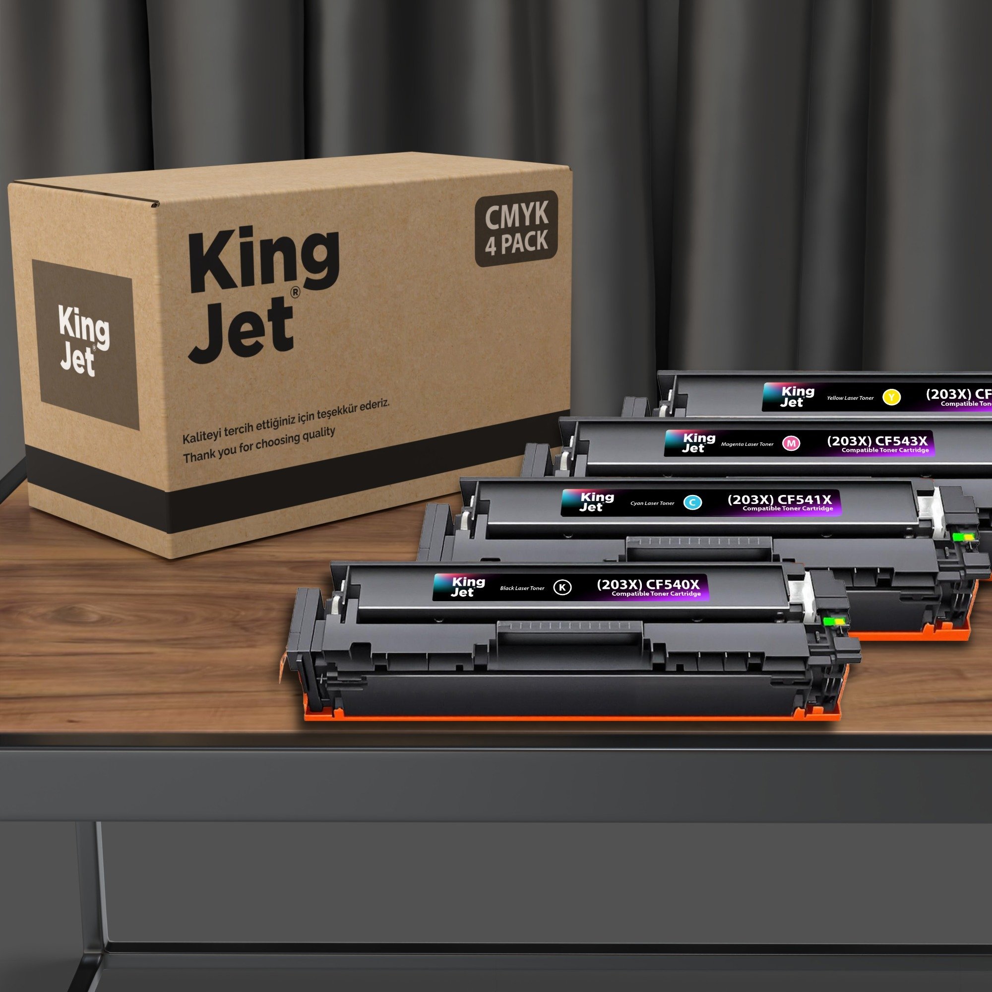 KingJET®️ HP Uyumlu 203X (CF540X) Yüksek Kapasiteli 4 Renk Takım Çipli Muadil Toner Seti