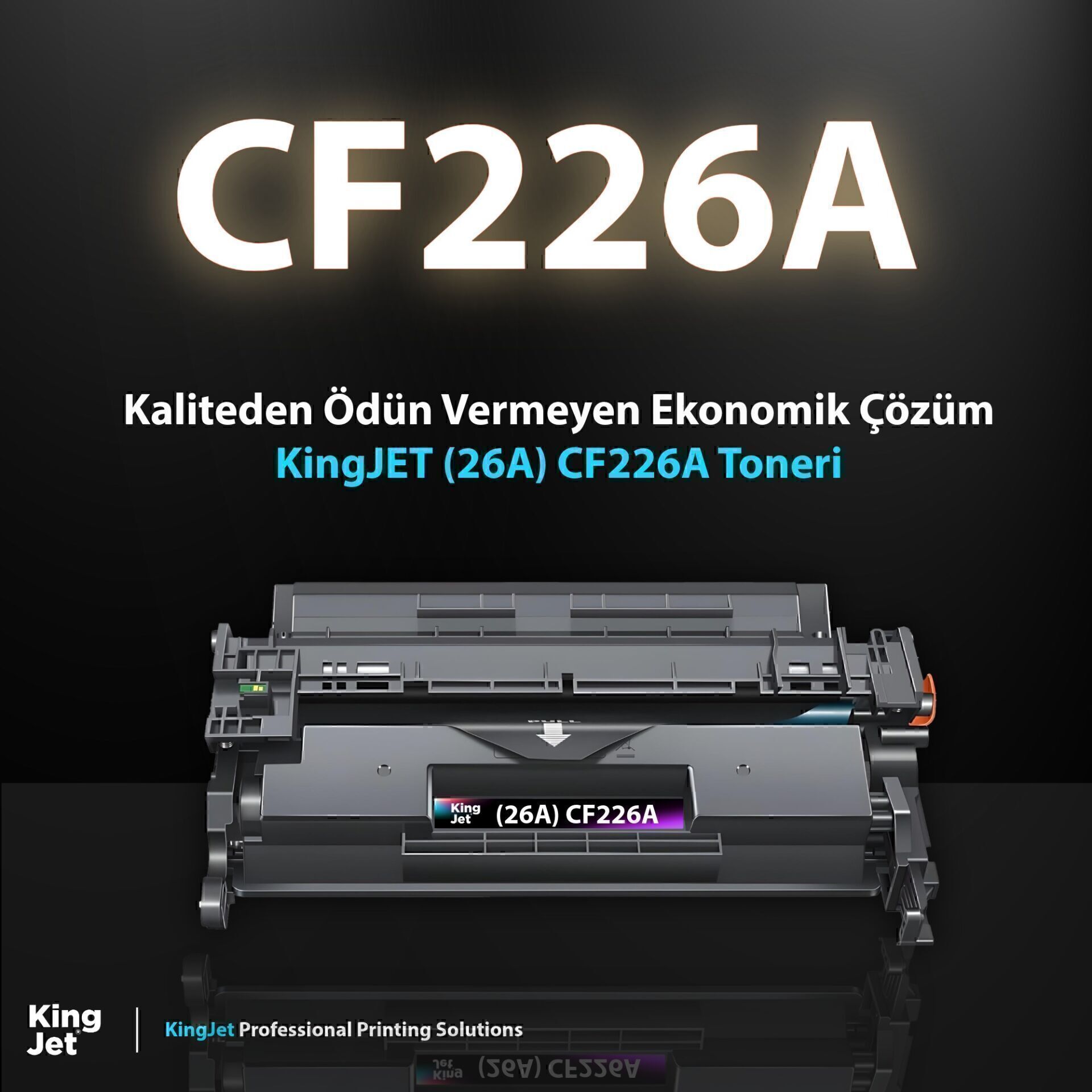 KingJET®️ CF226A Uyumlu Standart Kapasiteli Çipli Toner ürünümüz, günlük ofis işleriniz için en ekonomik baskı çözümünü sunar.