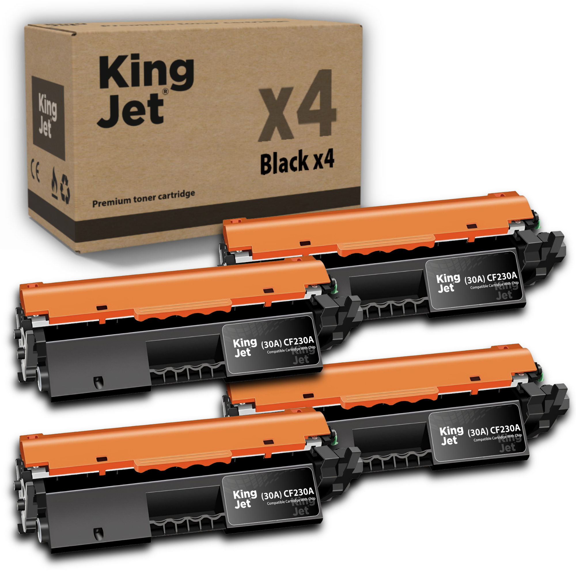 - 4 Adet KingJET®️ HP Uyumlu CF230A (30A) Çipli Siyah Muadil Toner